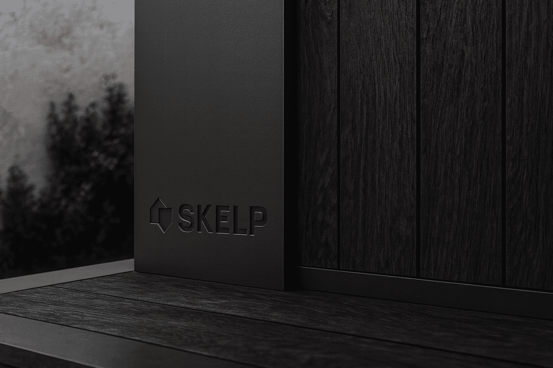 Elke Skelp-unit draagt onze identiteit op een ingetogen manier. Het Skelp-logo wordt niet toegevoegd als decoratie, maar ingefreesd in het stalen frame. Het maakt deel uit van de constructie zelf — discreet, duurzaam en blijvend. Net zoals onze architectuur is het merk geen laag erbovenop, maar een integraal onderdeel van het geheel.